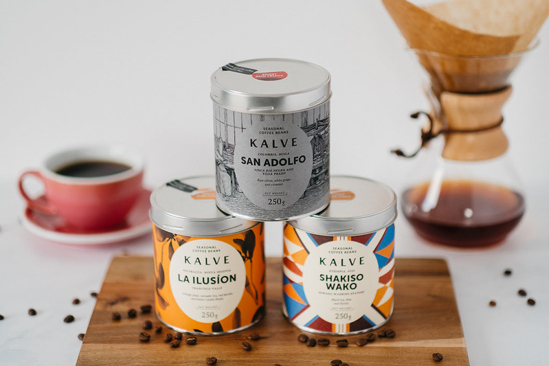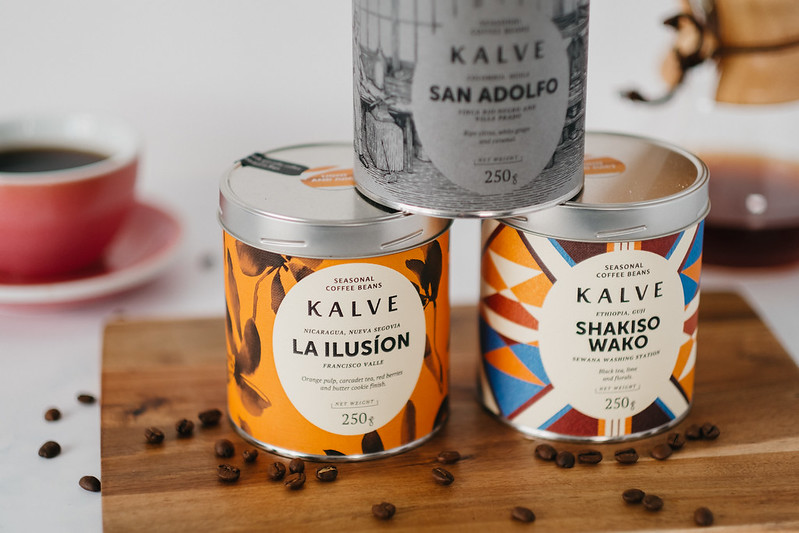 Z palarnią Kalve spotkałem się dwa lata temu w Rydze, w jednej z kawiarni. Ich opakowania – metalowe puszki z wzorzystymi, kolorowymi etykietami – są nie do przeoczenia. Nie pamiętam co akurat wtedy piłem, ale teraz na nowo mogłem odkryć te ryskie specjały.