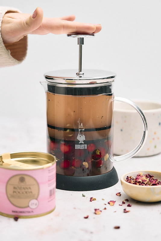 Herbata z płatkami róż, konfiturą, sokiem z cytryny i cierpką żurawiną tworzy napój, który jest nie tylko rozgrzewający, ale i niezwykle kojący dla zmysłów. Słodycz róży przełamana orzeźwiającą kwasowością i owocową głębią żurawiny, idealne smaki na ten czas.