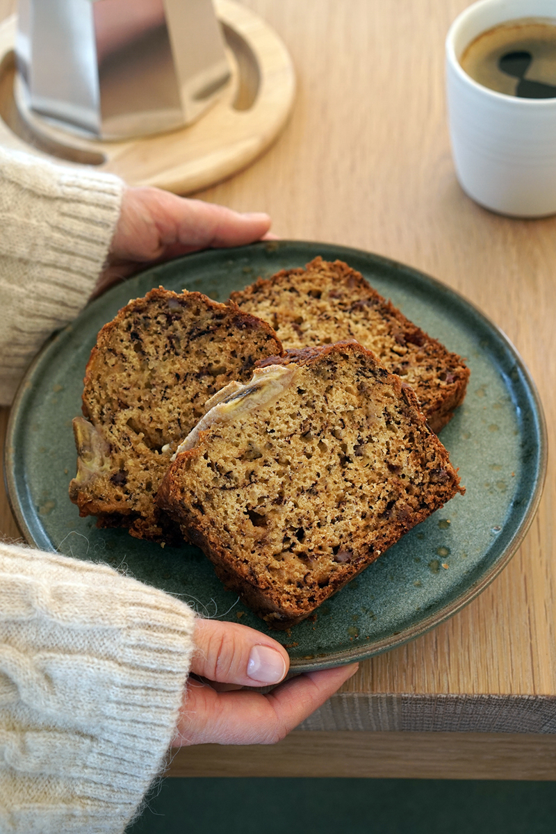 Śniadanie, podwieczorek, deser lub przekąska – chlebek bananowy z kawą idealnie sprawdzi się o każdej porze dnia. Łatwo go również zabrać ze sobą na wynos, do pracy, na uczelnię lub spacer. Zazwyczaj znika, zanim zdąży dobrze wystygnąć. Lekko ciepły z kubkiem ulubionej kawy lub herbaty smakuje cudownie. Jeżeli jednak zachowa się jakaś kromeczka, spokojnie możecie ją przechować na następny, a nawet kolejny dzień, ponieważ dobrze zachowuje świeżość. No i świetnie smakuje na ciepło, z tostera, piekarnika lub patelni.