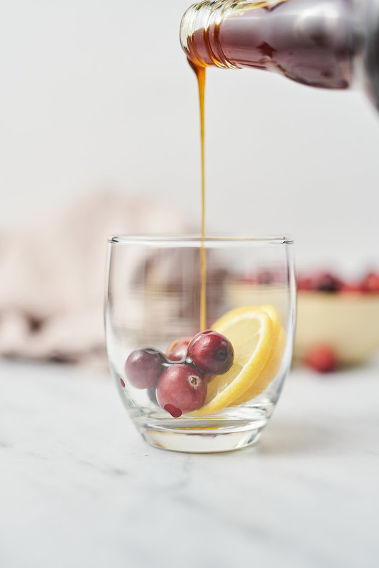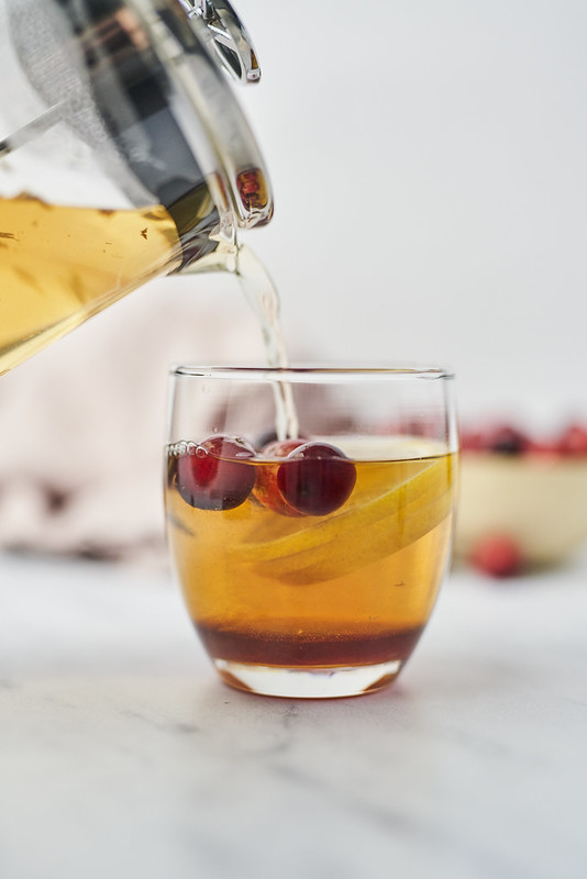 Liście herbaty zalewamy wodą w temperaturze 80 stopni. Do kubka wkładamy żurawinę i wlewamy syrop imbirowy. Całość zalewamy zaparzoną herbatą i dokładnie mieszamy.