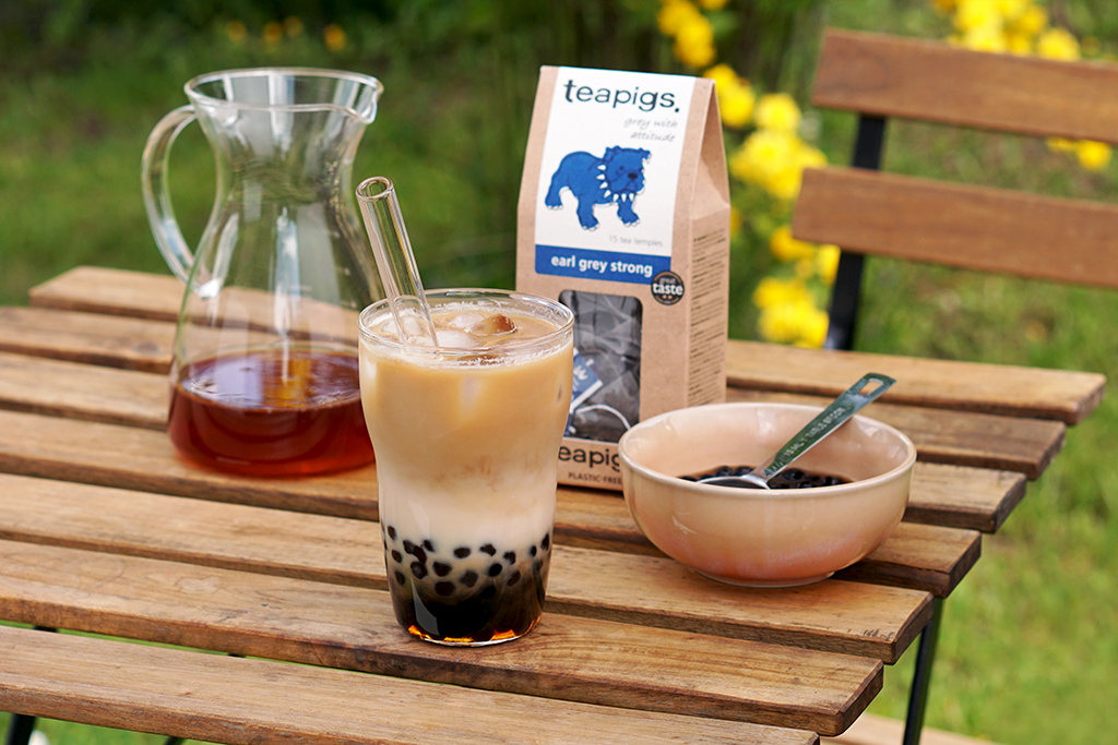 Jak sama nazwa wskazuje, bubble tea to napój na bazie naparu herbacianego, do którego przygotowania można użyć zarówno czarnej, jak i zielonej herbaty. Doskonale sprawdzi się słodko-owocowy Oolong, intensywny Assam oraz aromatyczny, wzbogacony bergamotką Earl Grey lub zielona herbata np. teapigs Mao Feng. Poza naparem kluczowym składnikiem herbaty bąbelkowej są urocze, intrygujące kuleczki z tapioki, które mogą być białe (po ugotowaniu stają się przezroczyste), bezsmakowe lub czarne z dodatkiem m.in. brązowego cukru, dzięki któremu są przyjemnie słodkie z delikatnie karmelowym posmakiem. Niestety te drugie często mają niezbyt dobry skład, dlatego kupując je koniecznie czytajcie etykiety. Przewagą domowej bubble tea jest właśnie to, że mamy większy wpływ na jej jakość wybierając dobrą, liściastą herbatę, “czystą” tapiokę i zdrowsze dodatki.