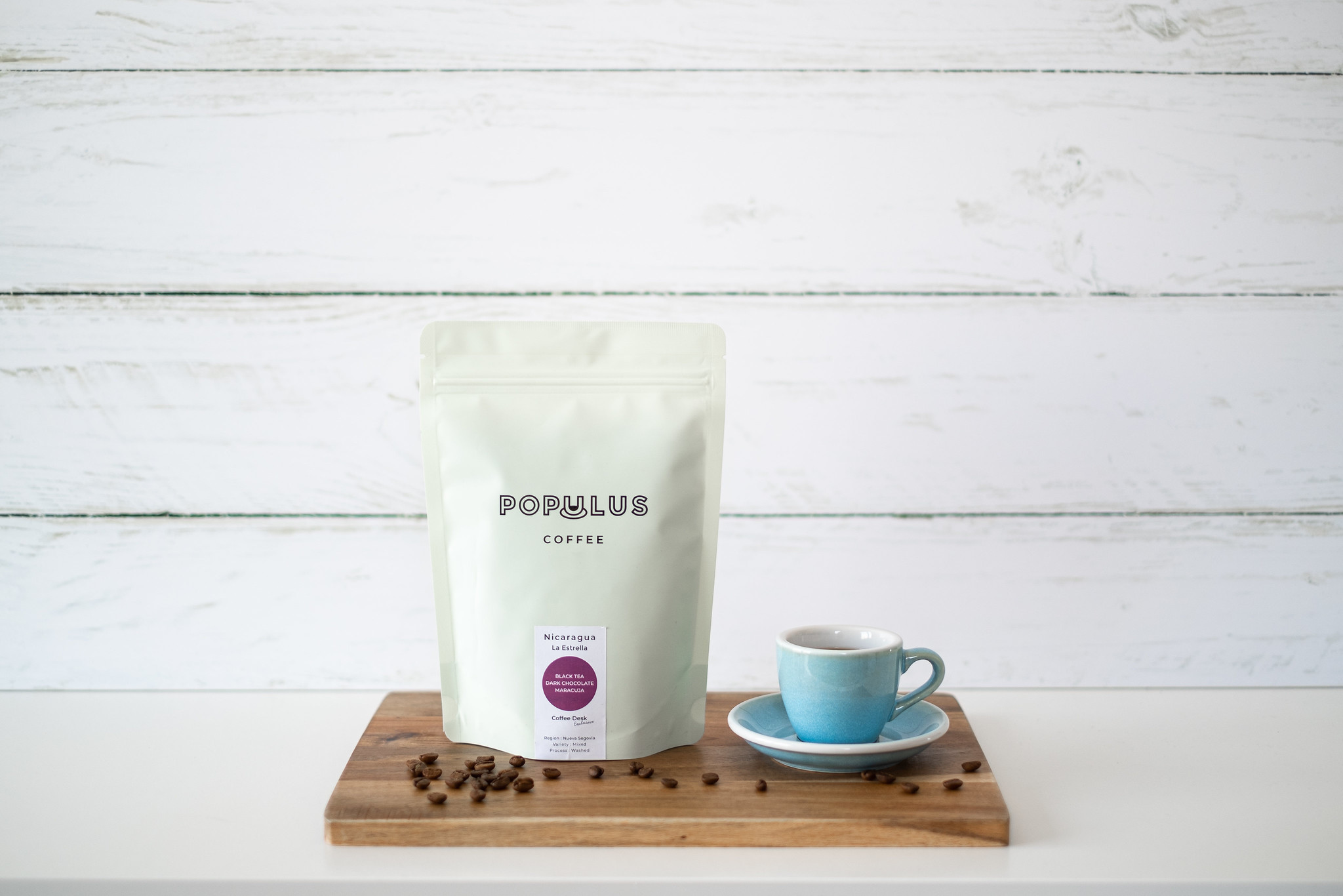 Nikaragua La Estrella z regionu Nuova Segovia wypalona w berlińskiej palarni Populus Coffee to wzorowa kawa z Ameryki Środkowej. Wysoka słodycz, orzechy, mleczna czekolada i nieoczekiwane, lecz bardzo wyraźne nuty owocowe, to gwarancja smacznej, orzeźwiającej i uniwersalnej kawy. Spróbujcie sami i w czasie izolacji uraczcie się pyszną kawą!