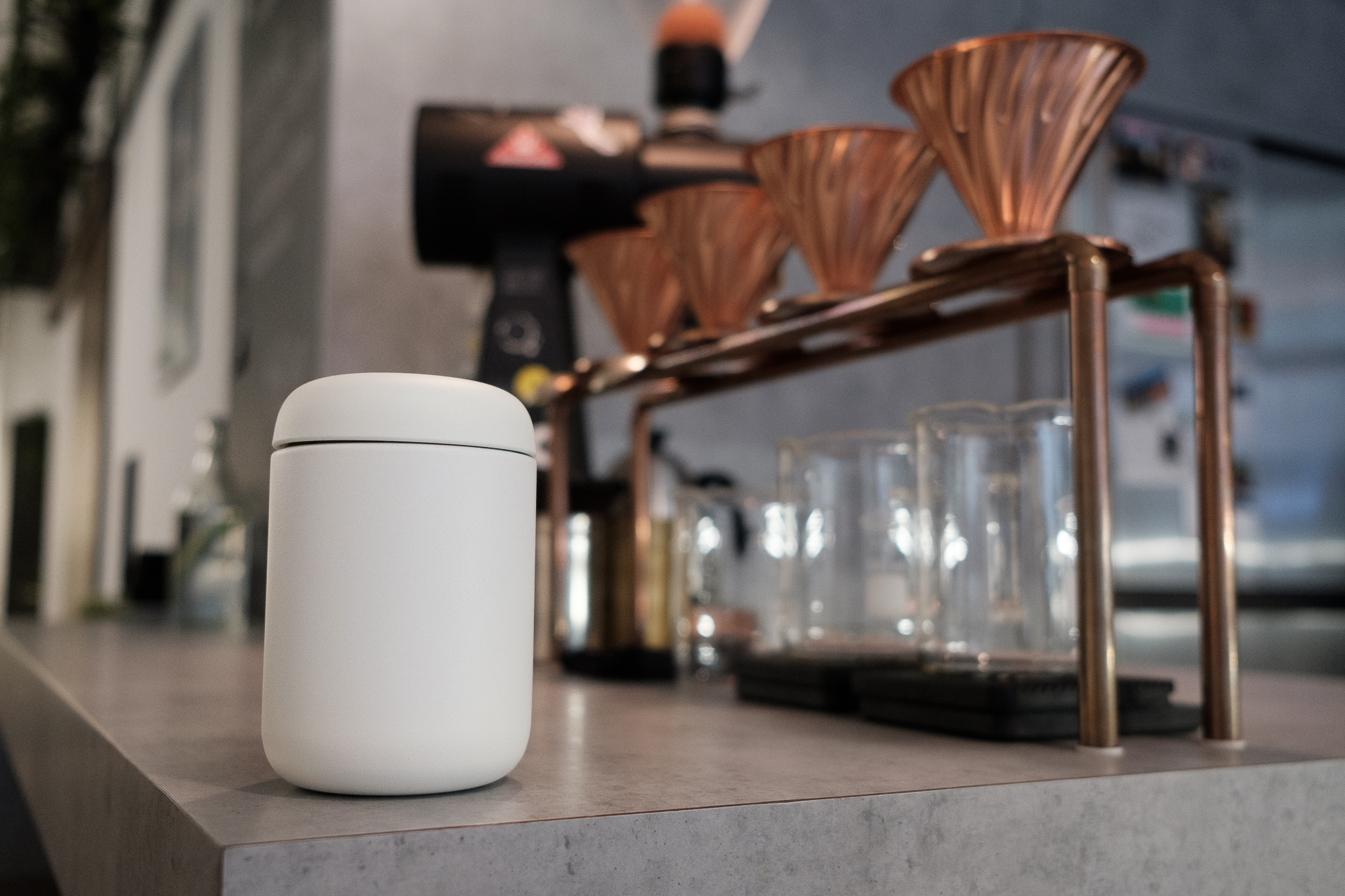 Szeroka średnica urządzenia pozwala na jednoczesne smakowanie i wąchanie – podczas picia nos „wchodzi” do środka Carter’a, pozwalając na jego udział w piciu kawy. Szerokość kubka sprawia, że zmieści się on pod dripem Hario V60 czy AeroPress’em i praktycznie każdym, alternatywnym sprzętem, przeznaczonym do parzenia kawy. Podczas parzenia bezpośrednio do naczynia od Fellow wszystko stoi stabilnie i nie wywraca się nawet po kopalnianych tąpnięciach (testy na śląsku nie należą do najłatwiejszych).