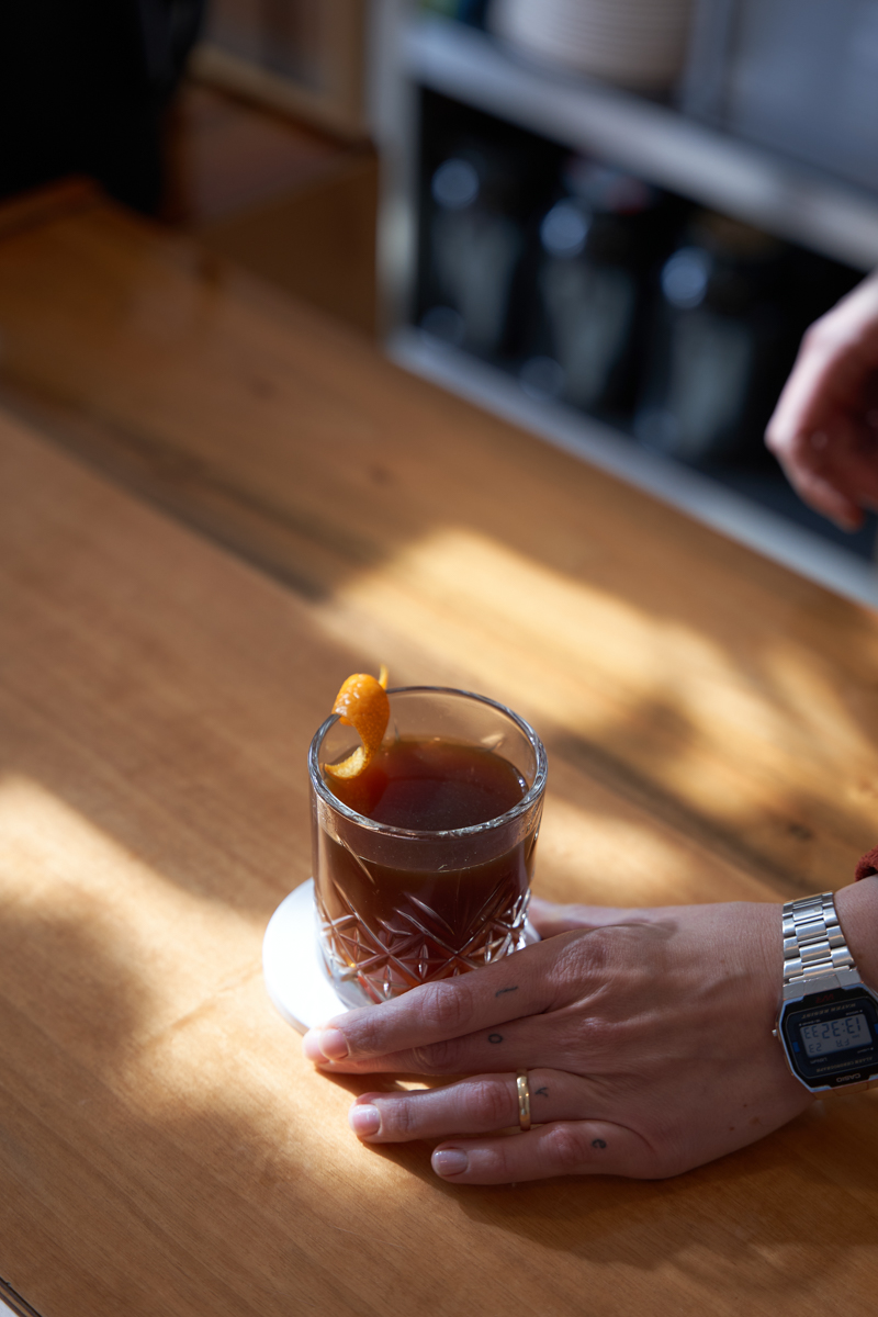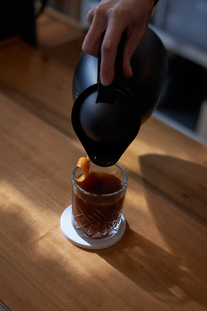 Czarna kawa z cytrusowo korzennym syropem, będącym bezalkoholową wariacją na temat falernum – likieru na bazie rumu, pochodzącego z Barbadosu. Jest orzeźwiający i rozgrzewający zarazem oraz świetnie łączy się z czarną kawą, zarówno taką zaparzoną w kawiarce, jak i w dripie czy aeropressie.