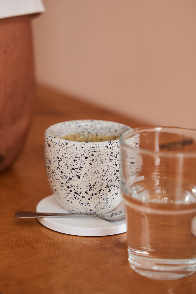 Ciastka ciastkami, kawa kawą, ale detale! Przychodząc do tej kawiarni na warszawskim Muranowie, spodzewajmy się jasnego, przestronnego wnętrze, lastryko obecnego w formie stolików i personalizowanej ceramiki od Wesky Studio. Tu nawet przestrzeń grająca rolę mini sklepiku z kwiatami, ceramiką i herbatą jest przyjemnym dla oka elementem wystroju.
