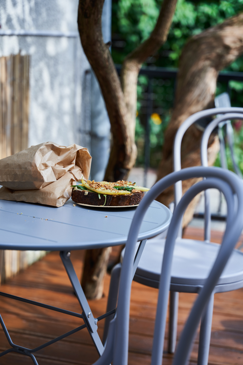 Latem spędzamy tu czas na leżaku w ogródku albo na murku przed lokalem., Powoli sączymy kawę, zjadamy shakshukę lub kawałek domowego ciasta i tak beztrosko wchłaniamy klimat Żoliborza. Tu o dziwo nikt się nie spieszy. I wcale nie mam na myśli baristów! Żoliborz zdecydowanie ma jakąś moc, która pozwala na chwilę przystopować.