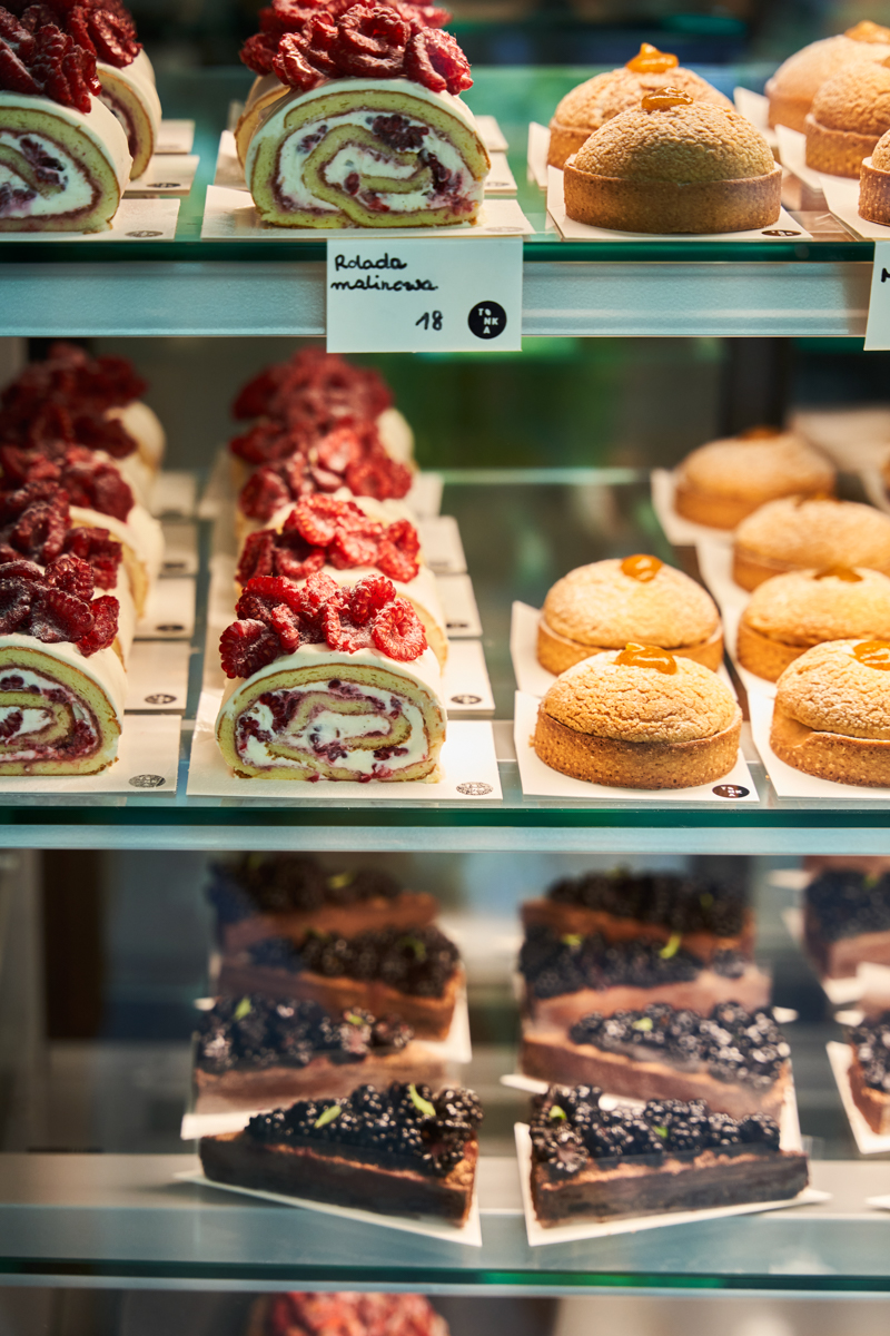 Choć z zamysłu Tonka jest cukiernią z wypiekami rodem z Paryża, to trzeba przyznać, że temat kawy potraktowano tu znacznie poważniej niż w stolicy Francji. Do śmietankowej, delikatnej rolady malinowej zamawiamy przelew na lodzie. Orzechowe nuty wyczuwalne w Paris Brest świetnie podbije kremowy flat white, a do tartaletki z mirabelką i kremem patissiere dobieramy delikatną w smaku herbatę Oolong. Małą czarną parzy się tu z ziaren z lokalnych palarni tj. HAYB i Coffeelab, a o jakość herbacianych liści dba The Tea.