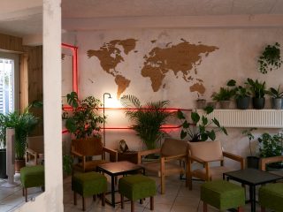 Nadal w tym samym zagłębiu, chociaż ulicę dalej, od listopada 2022 działa Miejsce. Marzeniem Mikołaja – właściciela było stworzenie przestrzennej kawiarni specialty, bo – jak mówi z uśmiechem – w Szczecinie albo ma się dużo miejsca albo dobrą kawę. Do Miejsca wchodzi się nie jak do kawiarni, a jak do domu znajomych, prosto na wielką, wygodną kanapę. W wystroju dominują zieleń ultra green, brązy, naturalne drewna i kwiaty. Wszystkie meble z ciemnego drewna o wysokim połysku albo pochodzą z drugiego obiegu, albo zostały wykonane przez tatę Mikołaja. Siedząc na drugiej sali zwróćcie uwagę na kształt stolików – mają nieregularne kształty, bo to pozostałości z płyt wykorzystanych do budowy baru. Na młynku Kafar, czasem MAMAM, a kawy pod alternatywy rotują. Jest winko, ale nienaturalne, za to piwko craftowe.