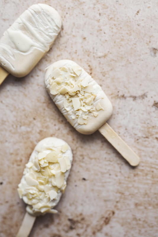 Aby dodać lodom dodatkowego uroku i smaku, możesz przygotować polewę z białej czekolady. Rozpuść 100 g białej czekolady z 20 ml śmietanki w kąpieli wodnej i przestudź. Następnie polej nią zamrożone lody i posyp orzechami lub innymi ulubionymi dodatkami.