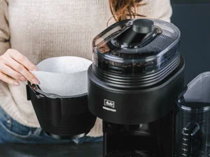Warto pamiętać, by przed rozpoczęciem parzenia włożyć filtr do koszyczka i uzupełnić wodę w zbiorniku.