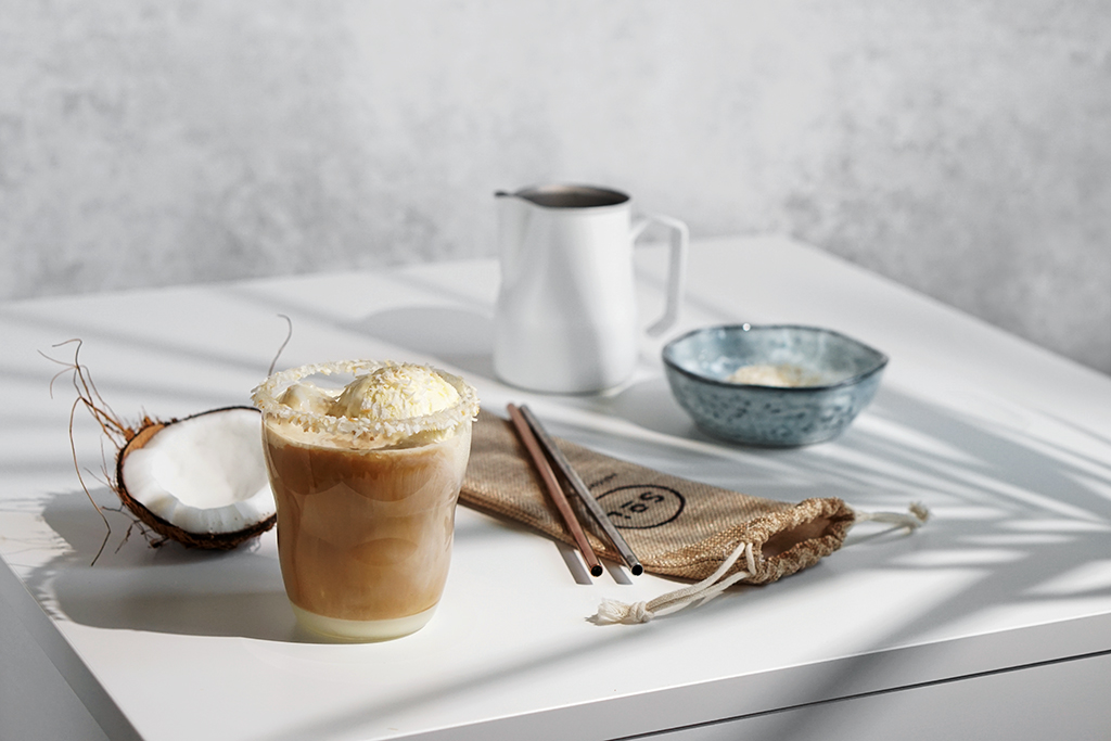 Mleczko kokosowe powstaje z miąższu orzecha kokosowego, ma gęstą konsystencję i charakterystyczny, wyraźnie kokosowy smak. Świetnie sprawdza się do przygotowywania kaw na zimno. Niemniej jednak, kawa z mlekiem kokosowym na zimno to zdecydowanie napój dla miłośników niecodziennych smaków. Całość jest bardzo treściwa, kremowa, a z gałką lodów to już zdecydowanie bardziej deser niż mała czarna. Jednakże nie zapominajcie, że w dalszym ciągu z konkretną porcją kofeiny i niestety kalorii. Ale jest na sposób, można użyć mleczka kokosowego z obniżoną zawartością tłuszczu lub mleczko kokosowe wymieszać z napojem kokosowym. Obie wersje kawy z mlekiem kokosowym dają radę, są lżejsze, lecz w dalszym ciągu przyjemnie kremowe.
