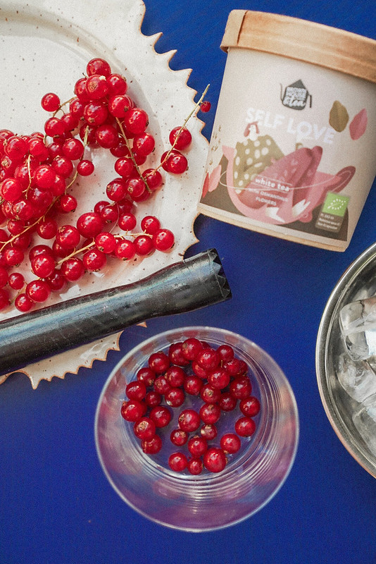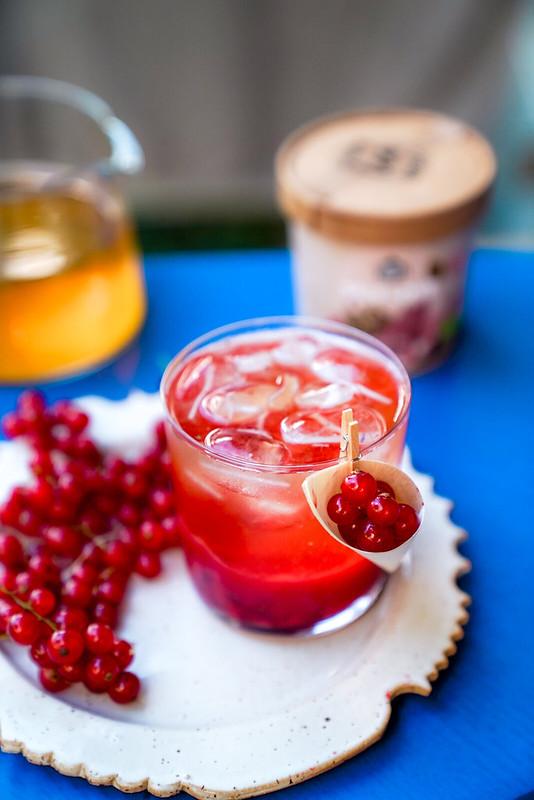 Do szklanki wrzucamy czerwone porzeczki (wcześniej umyte i pozbawione szypułki). Następnie delikatnie je rozgniatamy przy użyciu muddlera. Im więcej porzeczek tym kwaśniejszy koktajl! Gdy porzeczki mają już konsystencję puree szklankę wypełniamy lodem. Następnie wlewamy około 100 ml herbaty. Najlepiej zaparzyć ją według instrukcji na opakowaniu kilka godzin wcześniej, żeby zdążyła wystygnąć.