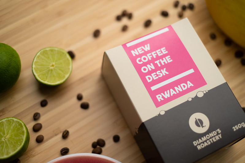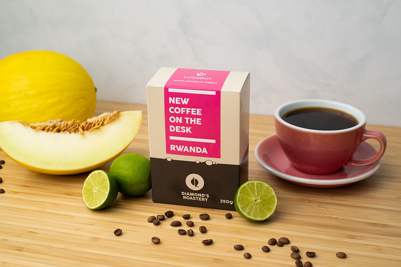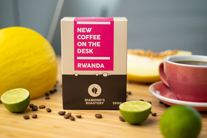 Diamond’s Roastery zawsze szykuje jakieś etykiety z zabawną, podtekstową adnotacją. Nie inaczej jest tym razem i na pudełku widnieje wielki napis „New coffee od the desk”, puszczając oczko do coffeedeskowych klientów.
