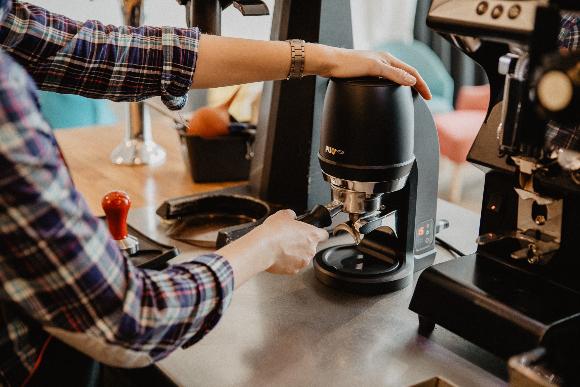 Pomijamy wszystkie czasochłonne elementy – nie musimy badać palcami czy manualny tamper prosto leży na ziarnie, skupiać się na powtarzaniu takiej samej siły nacisku, a i tak koniec końców często popełniamy jakiś niechciany mikro bądź makro ruch, który partaczy całą ścieżkę, która ma nam dać pyszne espresko, ristretko, lunguniuniunio. Czego chcieć więcej? Nic tylko brać i puqać!