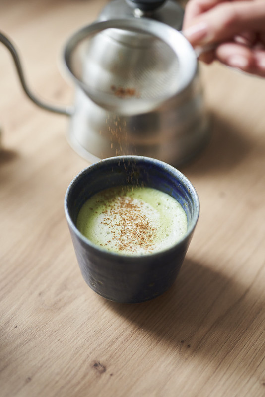 - Piernikowe mleko wlewamy do matchy, wierzch można posypać dodatkową porcją cynamonu.